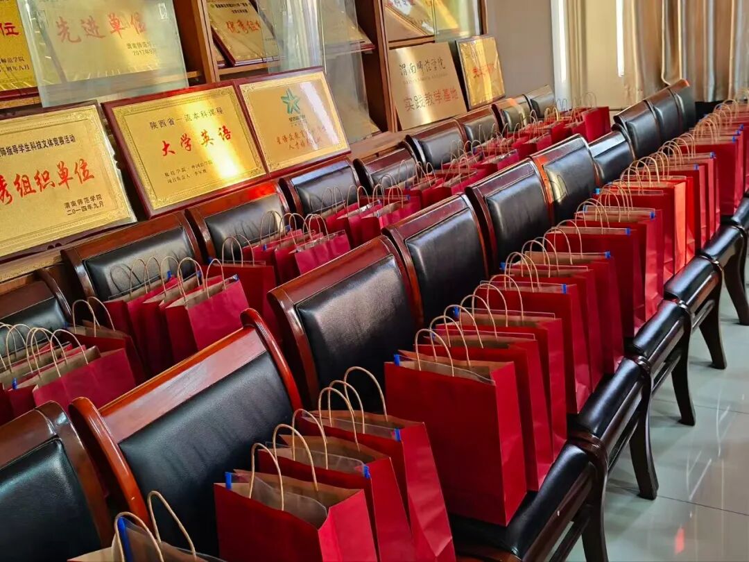 在温馨的祝福环节,学院领导老师们亲手书写祝福卡片,“笔锋所至,梦想开花”的字句间满载着对学子们的深情厚望。特别准备的“暖心”礼包更是寓意深远:文具袋象征“收纳有序,下笔有神”;橙子寓意“心想事成,马到成功”;牛奶代表“养分充足,能量满满”;巧克力寓意“克服困难,力挽狂澜”。每一份礼物都承载着老师们最真挚的祝愿——愿学子们提笔从容自信,合笔如愿以偿。