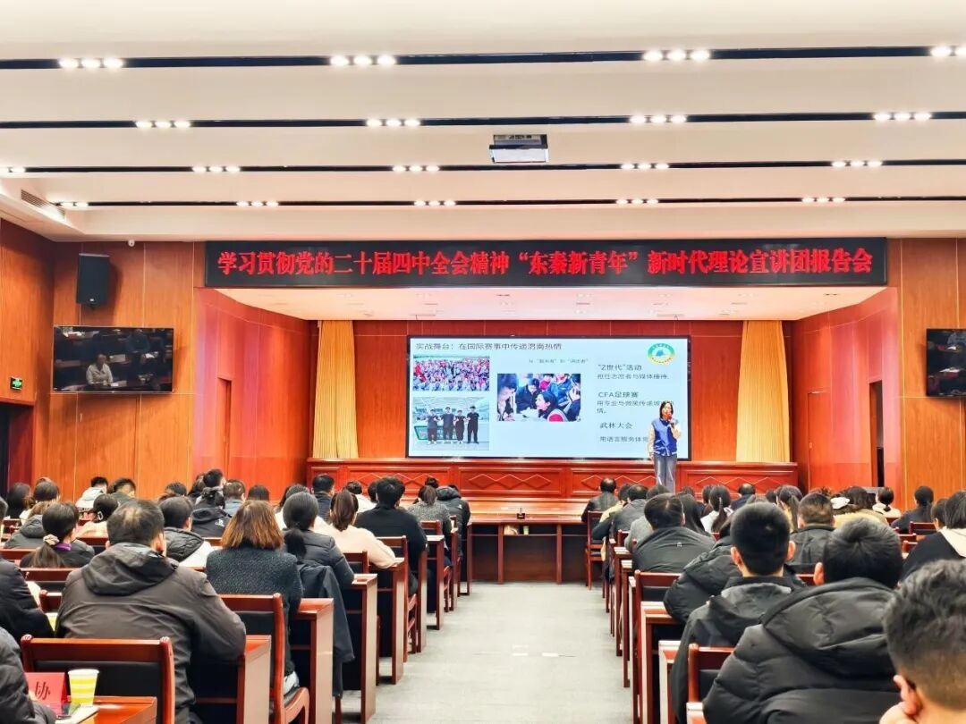 11月19日至27日,学习贯彻党的二十届四中全会精神渭南市“东秦新青年”新时代理论宣讲团深入渭南市11个县(市、区)和渭南高新区、渭南经开区开展巡回宣讲活动。我院团委书记伍萌参加了11场宣讲,在本次巡回宣讲活动中获得广泛好评。
