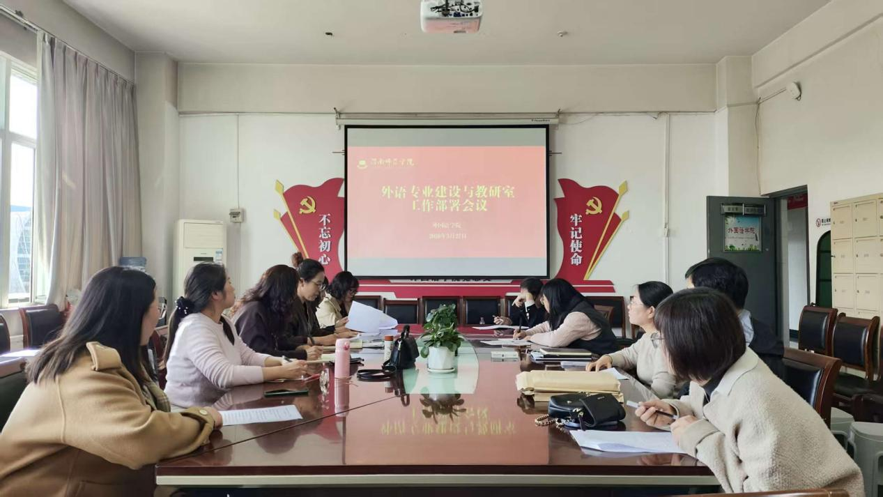 3月26日,外国语学院组织召开专业建设与教研室工作部署会议。本次会议由学院副院长李圣恩主持,各专业负责人、教研室主任以及校级教学督导宋引秀老师共同参会。