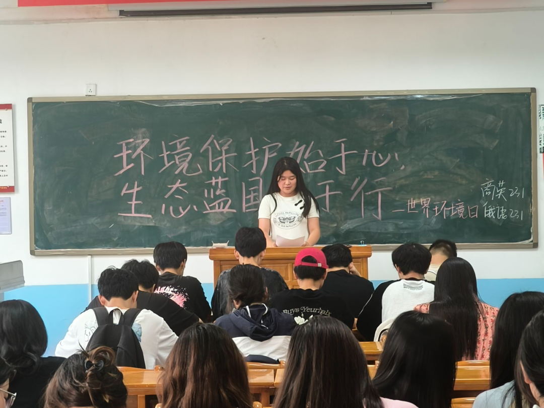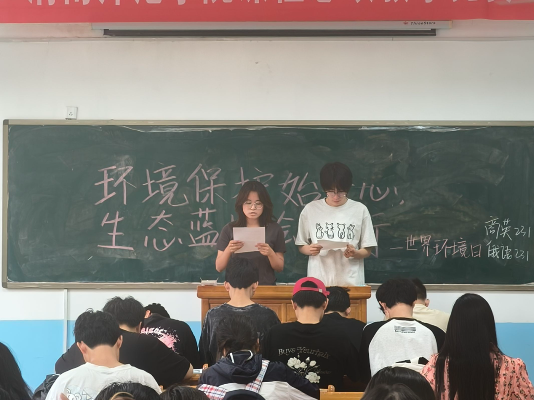 活动伊始,主持人寇瑞瑶、刘锦垣向大家介绍此次活动的主题“环境保护始于心,生态蓝图绘于行一一世界环境日”。随后,各班团支书以宣讲的形式为同学们详细介绍了我国的环保政策、环保知识以及日常生活中的低碳行为。引导同学们明白保护环境的重要性,以及如何从点滴做起,为地球减负。