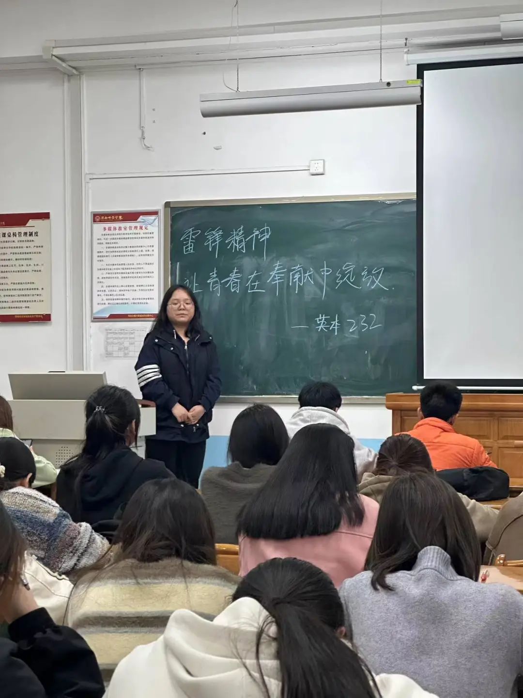 沧海横流,方显英雄本色。青山屹立,不坠凌云之志。此次班会各班班长团支书通过讲解、讨论、视频展示等形式,从不同角度诠释了雷锋精神,体现了雷锋热爱祖国、热爱党的崇高理想和坚定信念,让同学们在雷锋事迹中感受雷锋崇高品质和奉献精神。斯人虽远去,精神永长存。雷锋精神并不遥远,它就在我们的日常生活中,小至帮助陷入困境之人度过难关,大到践行“诚信友善核心价值”观,都是其最质朴平凡的体现。平凡力量,温暖你我,涓涓细流,汇成江海