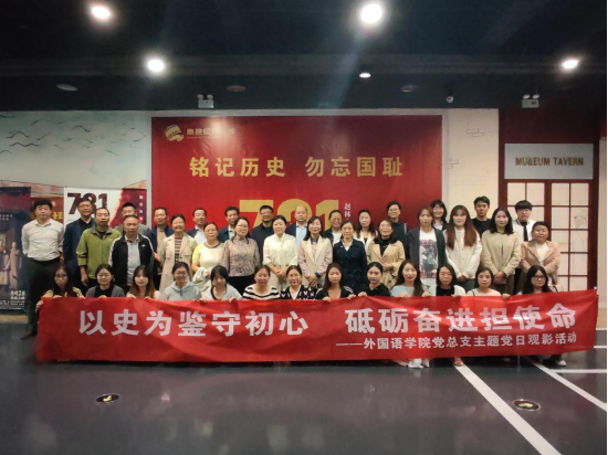 9月28日晚,外国语学院党总支组织开展“以史为鉴守初心,砥砺奋进担使命”主题党日活动,集中观看爱国主义题材影片《731》。校党委副书记常青林,党委委员、组织部部长田超,外国语学院处科级干部、辅导员、师生党员代表参加活动。