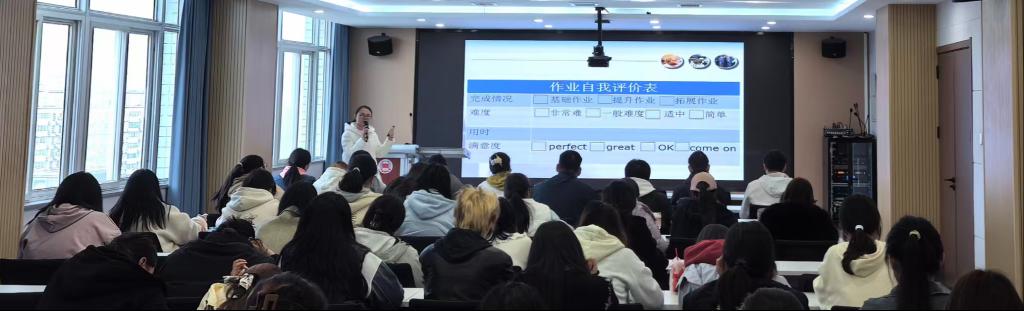 讲座最后,吕老师鼓励在场师范生:作业改革虽面临挑战,但只要当下与未来的英语教师携手探索,英语作业必将成为学生乐学愿做的成长环节。