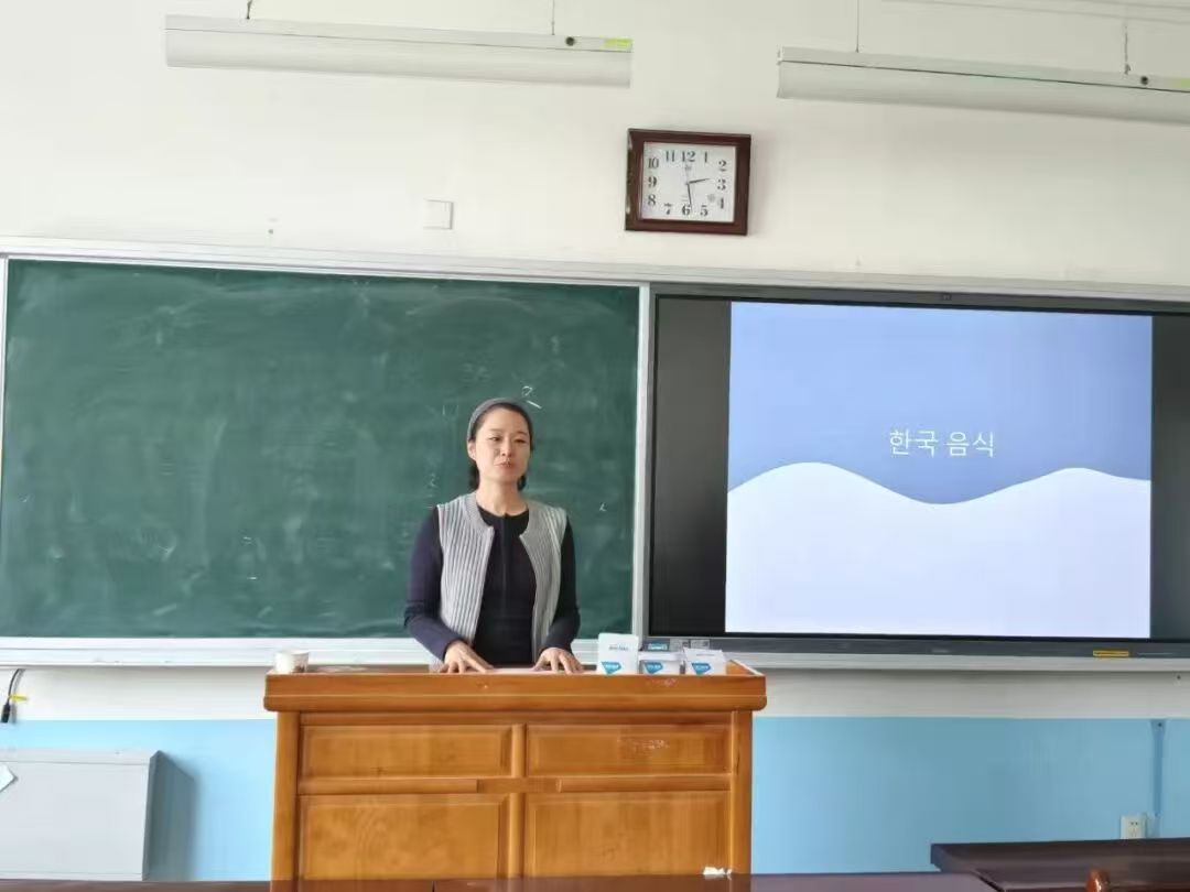 在《韩国饮食文化》课上,杨怡老师以“饮食即文化密码”为线索,引导学生深入探寻韩国美食背后丰富的文化内涵。通过直观的图片展示和生动的案例解析,学生不仅掌握了拌饭、泡菜、烤肉、冷面等国民美食的特点,更深刻理解了“五味五色”、“共享精神”与“发酵文化”等韩国饮食哲学。课堂尾声,以“你最想尝试的韩国美食”为题展开讨论,有效引导学生从单纯的知识记忆走向深层次的文化理解。