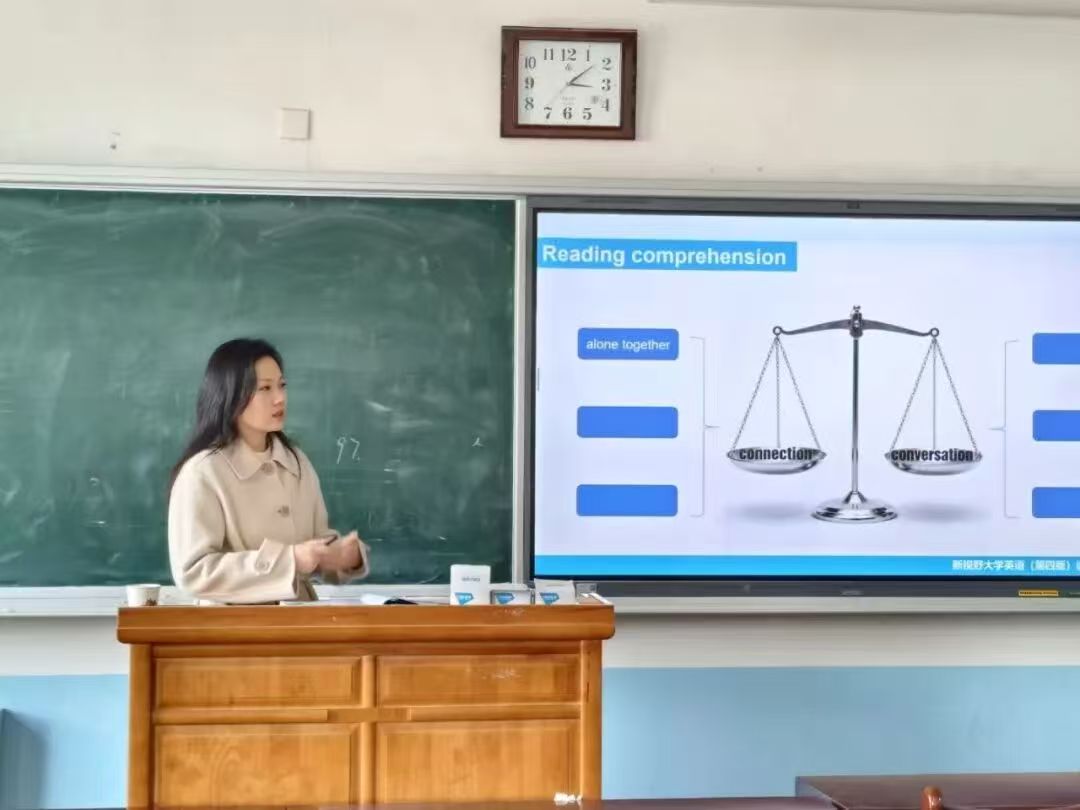在《大学英语》课堂上,仵雨萌老师围绕“Connection or Conversation?”这一主题,引导学生对数字时代的人际关系进行深度思辨。她先从“屏幕时间自查”、“理想沟通与现实对比”等情境切入,有效激发了学生对“线上连接”与“线下交谈”的思考。教学中,通过构建“概念天平”梳理文本论证逻辑,并设置“宿舍生活场景”讨论,引导学生进行辩证归因,最终落脚于“我的沟通改善计划”,推动学生将课堂思辨成果转化为实际行动,实现了语言能力、思维品质与人文素养的协同发展。