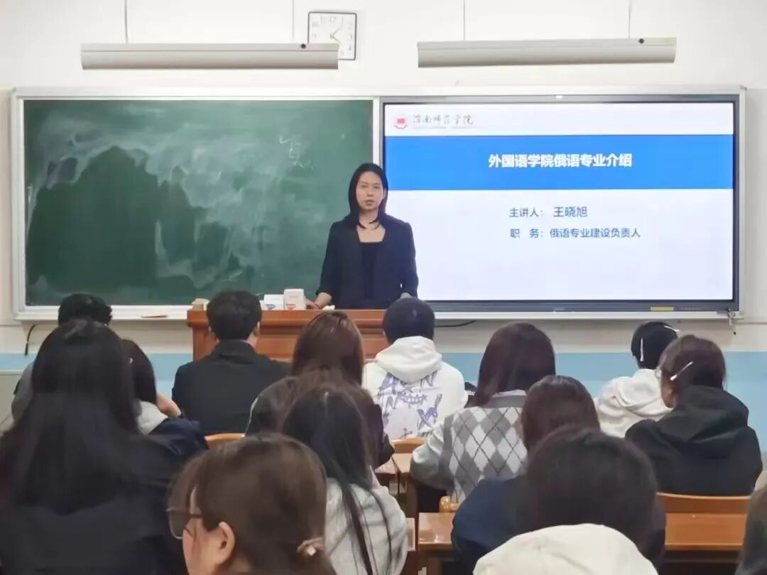 在专业认知教育环节,学院老师集中介绍了外国语学院的整体师资、专业设置与教学资源。英语、朝鲜语、日语、俄语四个专业负责人及新生班主任分场次开展专题讲座,围绕学科特色、培养目标、就业前景与考研方向等维度,为新生提供全面、系统的专业导览,搭建起师生沟通的桥梁,也为后续专业学习奠定了坚实基础。