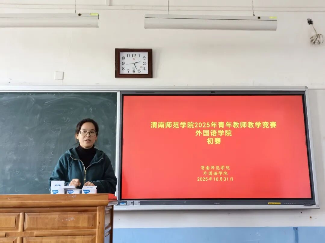 2025年10月31日下午,外国语学院青年教师教学竞赛院内选拔赛在4412教室顺利举行。多位青年教师凭借精心的教学设计、扎实的专业素养和出色的现场表现,呈现了一场高质量、多元化的教学盛宴。竞赛由副院长李圣恩主持,外国语学院教学指导委员会六位老师——李碧云、宋引秀、刘彦青、李圣恩、田小凤、崔文婷等担任评委。
