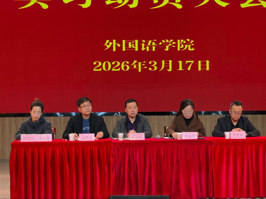 为扎实推进专业实习工作,帮助同学们顺利完成从校园到职场的角色过渡,3月17日,外国语学院2027届毕业生实习动员大会在陶然楼顺利举行。学院党总支书记武江波、院长李海荣、党总支副书记兼副院长高军强、副院长李圣恩、副院长李军胜、2023级英语专业辅导员介梦萌、全体实习指导教师及2023级英语专业学生共同参加。本次大会由副院长李圣恩主持。