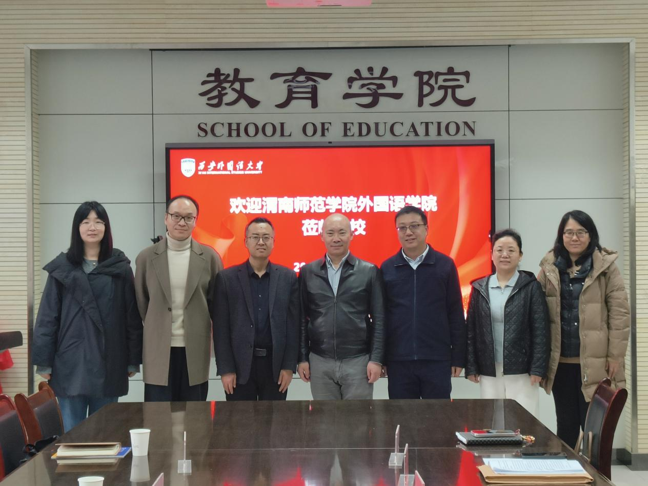 3月13日下午,外国语学院副院长李军胜带领英语专业建设负责人王渭刚、办公室副主任王朵朵一行3人赴西安外国语大学教育学院调研。西安外国语大学教育学院副院长高岩(主持工作)、副院长王嘉铭及相关教研室负责人热情接待了调研组一行。